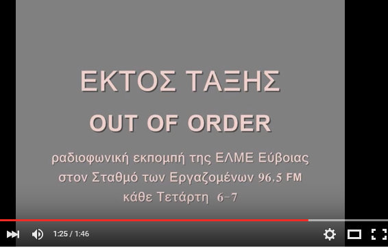 Tην Τετάρτη 9 Μαρτίου, στις 7 το απόγευμα, θα πραγματοποιηθεί η δεύτερη συνάντηση της ραδιοφωνικής ομάδας της ΕΛΜΕ, στα γραφεία της Ένωσης. Η εκπομπή της ΕΛΜΕ με τίτλο "Εκτός Τάξης" βγαίνει στον αέρα την Τετάρτη 16 Μαρτίου και ώρα 6-7 το απόγευμα από το σταθμό των εργαζομένων 96,5 fm.
