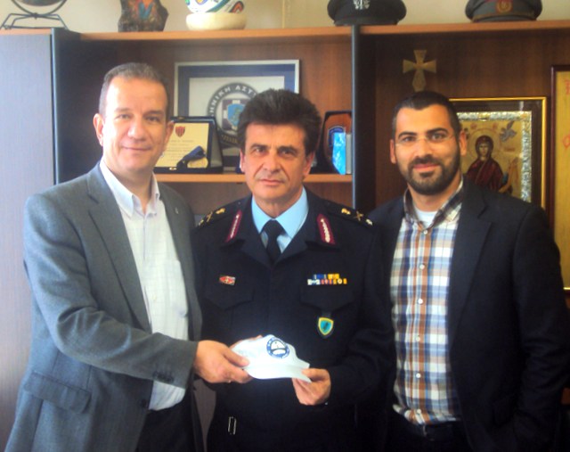 Ο Σταύρος Μακαρίου, ο Γιάννης Καράπας και ο Μιχάλης Δήμας (κατά κόσμον «Μικέλ»), εκπροσωπώντας το Σύνδεσμο Φιλάθλων Χαλκίδας "Τρελά Νερά", επισκέφθηκαν χθες το μεσημέρι το νέο αστυνομικό διευθυντή Ευβοίας, Ταξίαρχο Νίκο Γεωργακόπουλο.