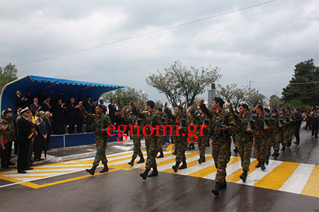 Έχουν κοπεί από τις παρελάσεις τα πολυάριθμα στρατιωτικά αγήματα του παρελθόντος. Τώρα, βλέπουμε λίγους και καλούς, όπως συνέβη με το άγημα της Σχολής Πεζικού Χαλκίδας. Παρέλασαν άψογα και χειροκροτήθηκαν.