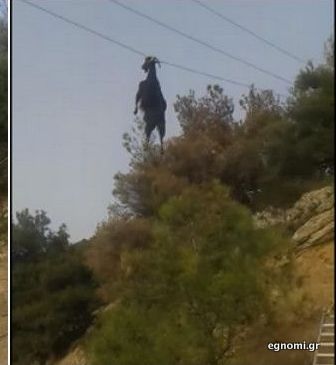 Για καλή της τύχη, τα καλώδια δεν είχαν ρεύμα κι έτσι το τετράποδο ζώο δεν έπαθε ηλεκτροπληξία. Περαστικοί είδαν την κατσίκα να ...αιωρείται και αποφάσισαν να την κατεβάσουν στήνοντας ολόκληρη επιχείρηση διάσωσης.