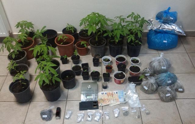 Σε νομότυπη έρευνα που ακολούθως πραγματοποιήθηκε στο σπίτι, βρέθηκαν μεταξύ άλλων και κατασχέθηκαν 37 φυτά κάνναβης μετά πλήρους ριζικού συστήματος, ύψους από 10 έως 50 εκατοστών το καθένα, καλλιεργημένα σε γλάστρες σε ειδικά διαμορφωμένο χώρο, που χρησιμοποιούταν ως φυτώριο κάνναβης, στον περίβολο τους σπιτιού.