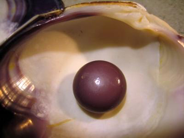 Μέσα υπήρχε ένα μωβ μαργαριτάρι. Στην αρχή η ίδια νόμιζε ότι ήταν μια πέτρα, όμως ο σύζυγός της πιο ...πονηρός το πήρε και πήγε σε έναν εκτιμητή.