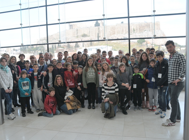 Στη φωτογραφία στιγμιότυπο από την επίσκεψη 60 μαθητών από το εξωτερικό, που φιλοξενήθηκαν στο Μύτικα, στο Μουσείο της Ακρόπολης.