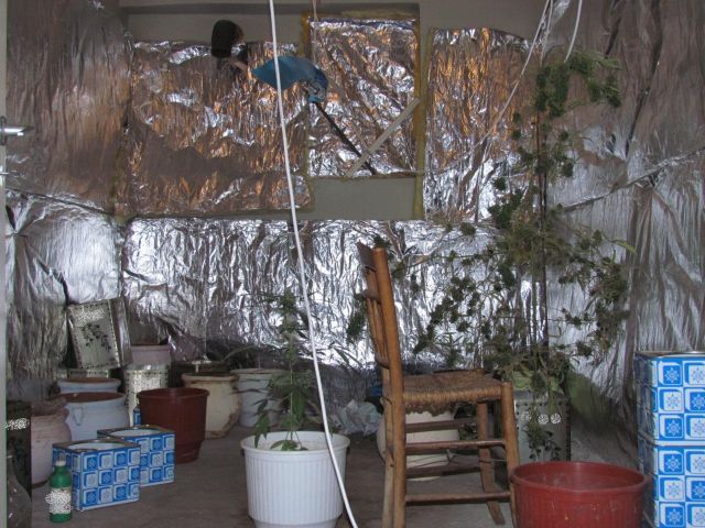 Είχε φτιάξει ειδικά διαμορφωμένο χώρο στο υπόγειο της κατοικίας του, με πλήρη θερμομόνωση στα τοιχώματα και εξαερισμό (φωτό πάνω δεξιά). Παράλληλα, καλλιεργούσε δενδρύλλια και σε εξωτερικό χώρο εγκαταλειμμένης κατοικίας δίπλα στο σπίτι του (φωτό κάτω).