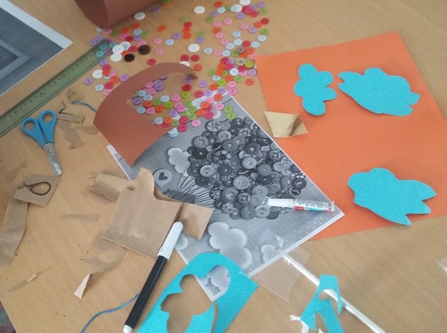 Στο τέλος αξιοποιήθηκαν δημιουργικά τα κουμπιά κατασκευάζοντας ένα πρωτότυπο αερόστατο προκειμένου να πετάξουν και να κάνουν ένα μεγάλο ταξίδι στα όνειρα τους.