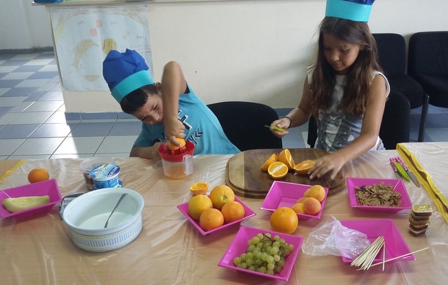 Έχοντας σαν αποστολή «Κάτι πορτοκαλί», τα παιδιά φόρεσαν τους αυτοσχέδιους μαγειρικούς τους σκούφους και μετέτρεψαν την βιβλιοθήκη σε κουζίνα μαγειρικής, ετοιμάζοντας υγιεινές λιχουδιές βασιζόμενοι στο πορτοκάλι.