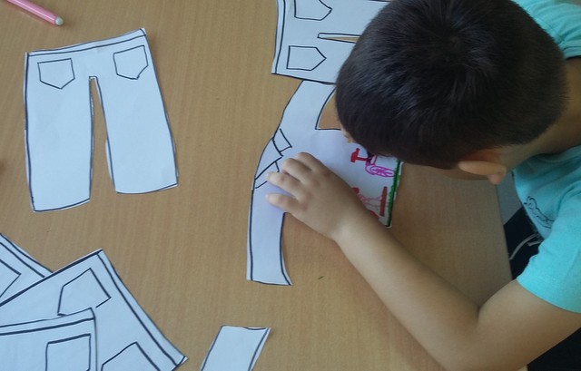 Στο τέλος, το κάθε παιδί διάλεξε ένα ρούχο και πάνω σε αυτό ζωγράφισε και έγραψε τα πράγματα που κάνει με τους φίλους του. Όταν ολοκλήρωσαν το έργο τους, εμπιστεύτηκαν τις προσωπικές τους αυτές στιγμές, στα μανταλάκια και άπλωσαν την δική τους «μπουγάδα» στην απλώστρα της βιβλιοθήκης.
