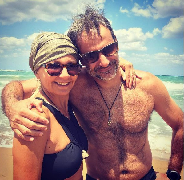 Αυτή τη φορά ανέβασε μία φωτογραφία στη θάλασσα με τη σύζυγό του, γράφοντας "Με τη Μάρεβά μου στην παραλία".