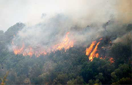 Για την κατάσβεσή της επιχειρούν ισχυρές πυροσβεστικές δυνάμεις από αέρος και εδάφους αλλά οι ισχυροί νοτιάδες δυσκολεύουν το έργο τους. Τα αίτια της πυρκαγιάς παραμένουν μέχρι στιγμής άγνωστα.