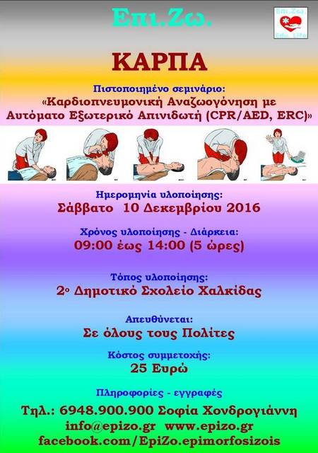 Η γνωστή διασώστρια και εκπαιδεύτρια Σοφία Χονδρογιάννη διοργανώνει τρία πιστοποιημένα σεμινάρια Α΄ Βοηθειών το Σαββατοκύριακο 10-11 Δεκεμβρίου, στα οποία θα διδάξουν έμπειροι εκπαιδευτές του Ευρωπαϊκού Συμβουλίου Αναζωογόνησης.