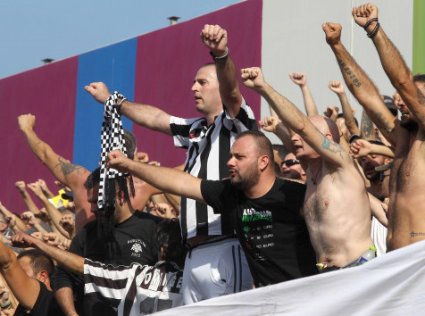 Καθοδόν για την Ιταλία, για να παρακολουθήσουν τον αγώνα με την Φιορεντίνα, τραγούδησαν ένα καταπληκτικό σύνθημα, στο ρυθμό του τραγουδιού "Ένα όμορφο αμάξι με δυο άλογα."