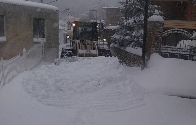 Μέσα στο χωριό χρειάστηκε να περάσει εκχιονιστικό, για να ανοίξει ο δρόμος.