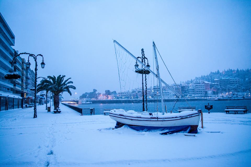 Φωτό γεμάτες χιόνι από την παραλία Χαλκίδας και την πλαζ Παπαθανασίου