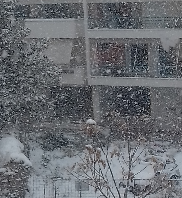 Οι φωτογραφίες που βλέπετε περιγράφουν την κατάσταση που επικρατεί αυτή την ώρα (2:30 το μεσημέρι της Τρίτης 10 Ιανουαρίου) στο κέντρο της Χαλκίδας, με το χιόνι να πέφτει πυκνό και να στρώνεται αμέσως.