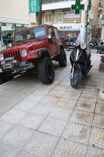 Θαυμάστε παρκάρισμα στη Χαλκίδα τζιπ και βέσπας. Μπράβο παιδιά για την διπλή παρανομία.