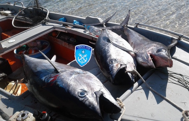Συγκεκριμένα βρέθηκαν δύο τόνοι, βάρους 82 κιλών και ένας ξιφίας, βάρους 18 κιλών. Τα ψάρια αυτά είχαν αλιευθεί με τη χρήση δύο αλιευτικών εργαλείων (παραγάδια με 162 αγκίστρια Νο 3), σε απαγορευμένη χρονική περίοδο και χωρίς το προαναφερόμενο αλιευτικό σκάφος να διαθέτει άδεια για την αλίευση μεγάλων πελαγικών ψαριών.