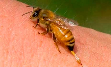 Μέλισσα-σφήκα: Οταν μας τσιμπήσει το δέρμα πρήζεται και κοκκινίζει σαν τοπική φλεγμονώδη αντίδραση. Ο πόνος είναι αρκετά έντονος και το πρήξιμο στην περιοχή εντείνει τον πόνο. Εαν μας τσιμπήσει στο λαιμό λαιμό πρέπει να προσέξουμε γιατί μπορεί να έχουμε πρόβλημα στην αναπνοή.