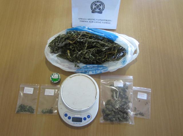 Πέντε συσκευασίες οι οποίες περιείχαν ποσότητα ακατέργαστης κάνναβης, συνολικού μεικτού βάρους 90,5 γραμμαρίων, καθώς και μία ηλεκτρονική ζυγαριά ακριβείας και ένας μεταλλικός τρίφτης κάνναβης, με υπολείμματα της συγκεκριμένης ναρκωτικής ουσίας.