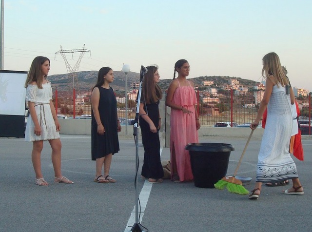 Στη συνέχεια οι μαθητές και οι μαθήτριες των ΣΤ΄ 1 και ΣΤ΄ 2 παρουσίασαν διασκευασμένο το έργο του Αριστοφάνη «Ειρήνη».