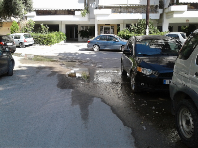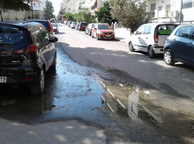 Για χρονικό διάστημα περισσότερο από ένα μήνα αναβλύζει νερό στο οδόστρωμα, στην οδό Μπολοβίνενας, στη Χαλκίδα, στο ύψος που βρίσκεται το παρκάκι, στην συμβολή με την οδό Αιδηψού.