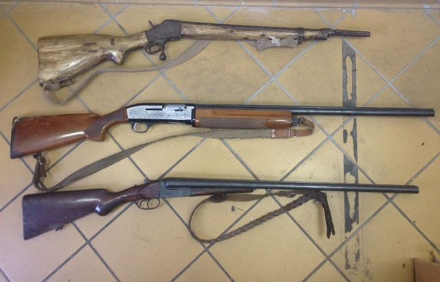 Στο πλαίσιο των ερευνών που ξεκίνησαν οι αστυνομικοί της Ασφάλειας Αγρινίου για την υπόθεση, πήγαν στο σπίτι ενός 43χρονου Έλληνα, όπου βρέθηκαν μια κυνηγετική καραμπίνα και ένα κυνηγετικό δίκαννο, που κατείχε παράνομα, καθώς και ένα πολεμικό τυφέκιο παλαιού τύπου.