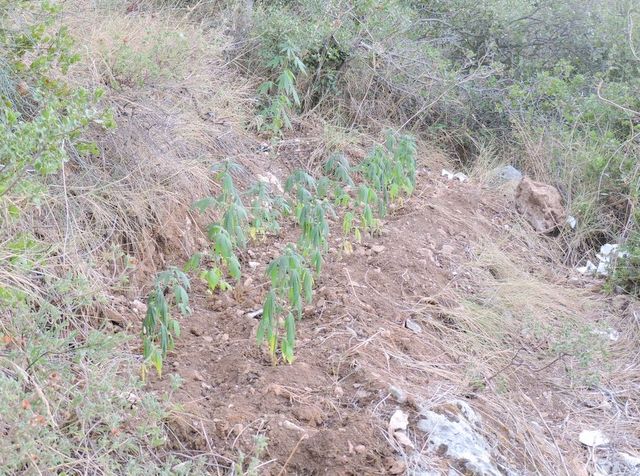 Οι επίδοξοι καλλιεργητές είχαν φτιάξει έναν ειδικά διαμορφωμένο – εκχερσωμένο χώρο, ο οποίος είχε τρία επιμέρους επίπεδα, ανάμεσα σε αυτοφυή βλάστηση, όπου καλλιεργούνταν τα δενδρύλλια κάνναβης.