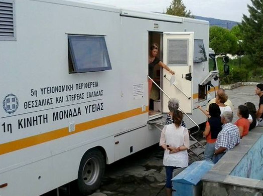Από κινητή μονάδα υγείας στο προαύλιο του Νοσοκομείου Κύμης.