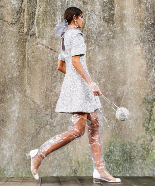Plastic it’s fantastic, ήταν το σχόλιο των περισσοτέρων fashion influencers την ώρα που παρακολουθούσαν την ανοιξιάτικη συλλογή. Καθώς ένας τεράστιος καταρράκτης ήταν το σκηνικό στο Grand Palais.