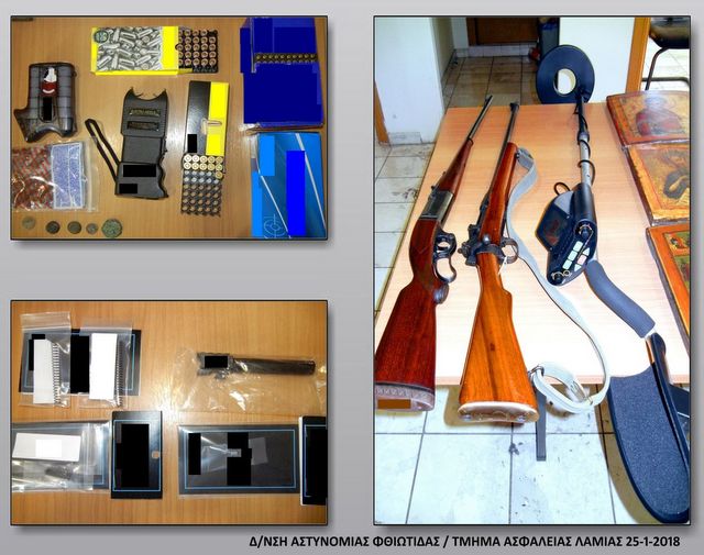 Δύο πολεμικά τυφέκια, ένας εκκενωτής ηλεκτρικής ενέργειας (tazer), 122 φυσίγγια, διαφόρων τύπων και διαμετρημάτων, 925 καψύλλια αναγόμωσης φυσιγγίων, 6 φορητές εικόνες με αναπαραστάσεις Αγίων, 60 αρχαία νομίσματα (λατινικής περιόδου), ένας ανιχνευτής μετάλλων, 10 κροτίδες και ένα σπρέι πιπεριού.