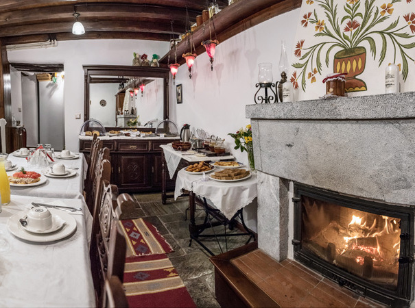 Διαθέτει έναν πανέμορφο χώρο με τζάκι, εκεί όπου σερβίρεται το πλούσιο πρωινό.