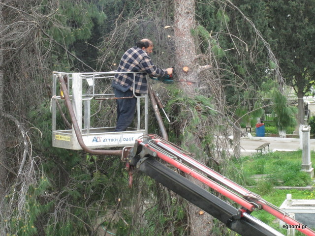 Το πρωί της Παρασκευής συνεργείο έκοψε τα δέντρα.