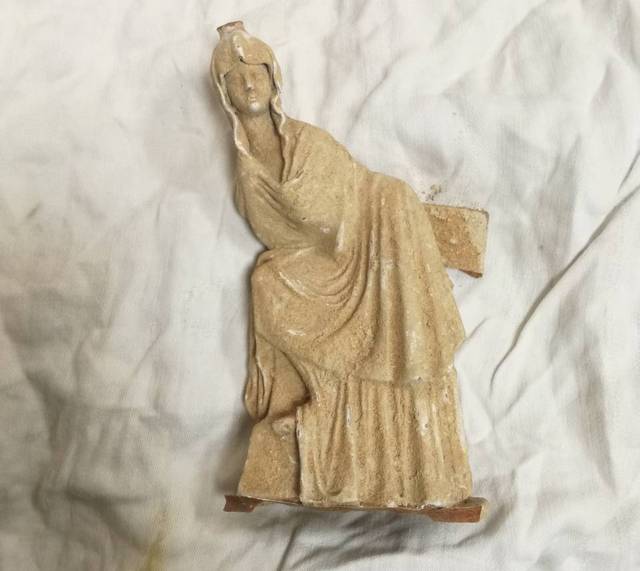 Κατά τη διενέργεια του ελέγχου βρέθηκε επιμελώς κρυμμένο (κάτω από το κάθισμα του οδηγού) και κατασχέθηκε, ένα πήλινο ειδώλιο (φωτό), το οποίο εκτιμάται Ελληνιστικής περιόδου και θα σταλεί στην Εφορία Αρχαιοτήτων Ευβοίας.