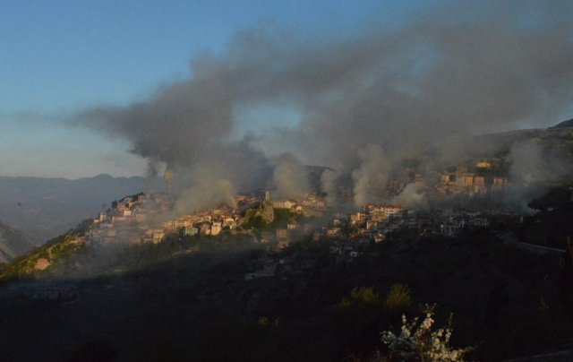 Κι όμως, οι εικόνες δεν είναι «πειραγμένες». Είναι πραγματικές φωτογραφίες από την Κυριακή του Πάσχα στην Αράχωβα, όταν η πόλη «κρύφτηκε» στους ...καπνούς από την προετοιμασία για το ψήσιμο των αρνιών!