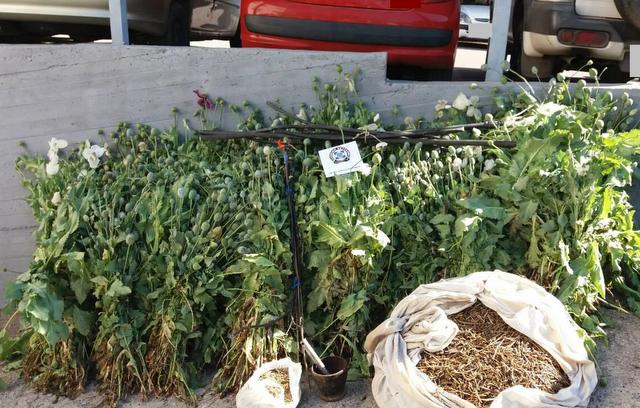 Συνολικά από τους αστυνομικούς εκριζώθηκαν και κατασχέθηκαν 3.700 οπιούχα φυτά υπνοφόρου μήκωνος, ύψους από 30 έως και 120 εκατοστών, τα οποία περιποιούνταν οι συλληφθέντες με αυτόματο σύστημα ποτίσματος, αποτελούμενο από πλαστικούς σωλήνες και μπεκ.