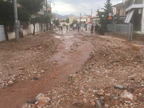 Η καταρρακτώδης βροχή που έπληξε τη Μάνδρα Αττικής και την ευρύτερη περιοχή στη Μαγούλα δημιούργησε μεγάλες καταστροφές τόσο σε σπίτια, καταστήματα όσο και στο οδικό δίκτυο.