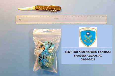 Η σύλληψή του έγινε στη γέφυρα του Ευρίπου. Στην κατοχή του ο δράστης είχε 16,2 γραμμάρια χασίς και ένα μαχαίρι μήκους 15 εκατοστών.