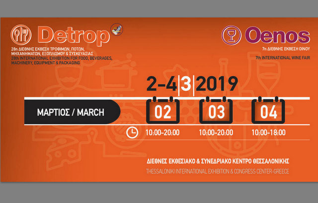 Η Περιφέρεια Στερεάς Ελλάδας ανακοινώνει τη συμμετοχή της στην 28η Διεθνή Έκθεση Τροφίμων, Ποτών , Μηχανημάτων, Εξοπλισμού και Συσκευασίας Detrop και στην 7η Διεθνή Έκθεση Oenos, που διεξάγονται ταυτόχρονα και θα πραγματοποιηθούν από 2 έως 4 Μαρτίου στο Διεθνές Εκθεσιακό Κέντρο της ΔΕΘ ΗΕLEXPO, στη Θεσσαλονίκη.