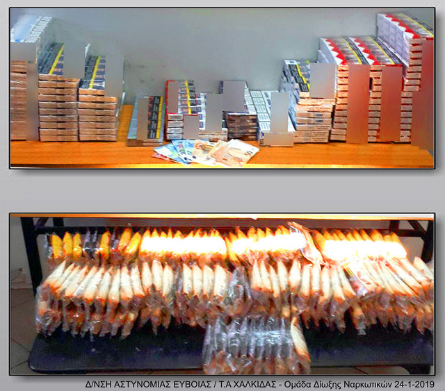 Συνολικά 170 συσκευασίες με ποσότητα αδασμολόγητου καπνού, συνολικού βάρους 8 κιλών και 500 γραμμαρίων, καθώς και 480 λαθραία πακέτα τσιγάρων, διαφόρων μαρκών, που περιείχαν συνολικά 9.600 τσιγάρα.